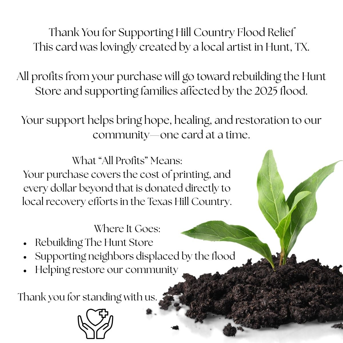 Created in the heart of Hunt, TX, this card is more than just art—it's a lifeline.